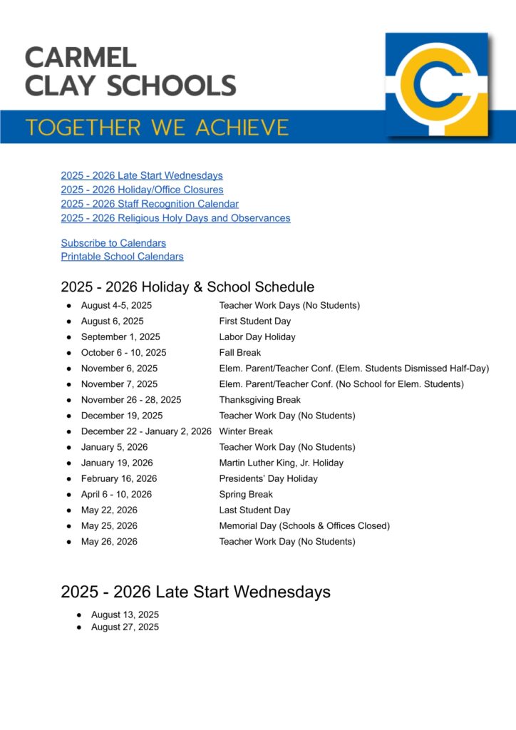 Carmel Clay Schools Calendar 2025 2026 in PDF School Calendar Info