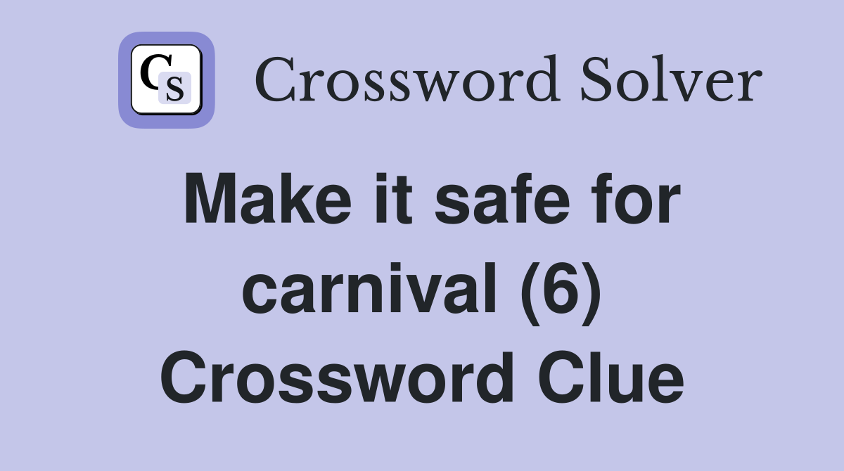 Make it safe for carnival (6) Crossword Clue Answers Crossword Solver