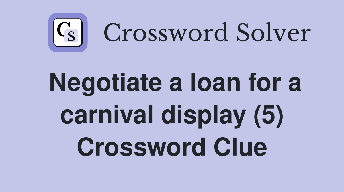 Negotiate a loan for a carnival display (5) Crossword Clue Answers