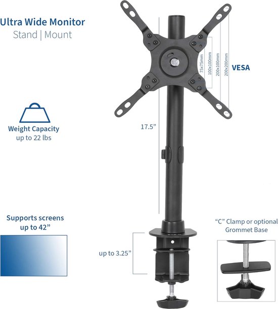 Verstelbare Ultra Wide Screen TV en Monitor Desk Mount tot 42 inch bol