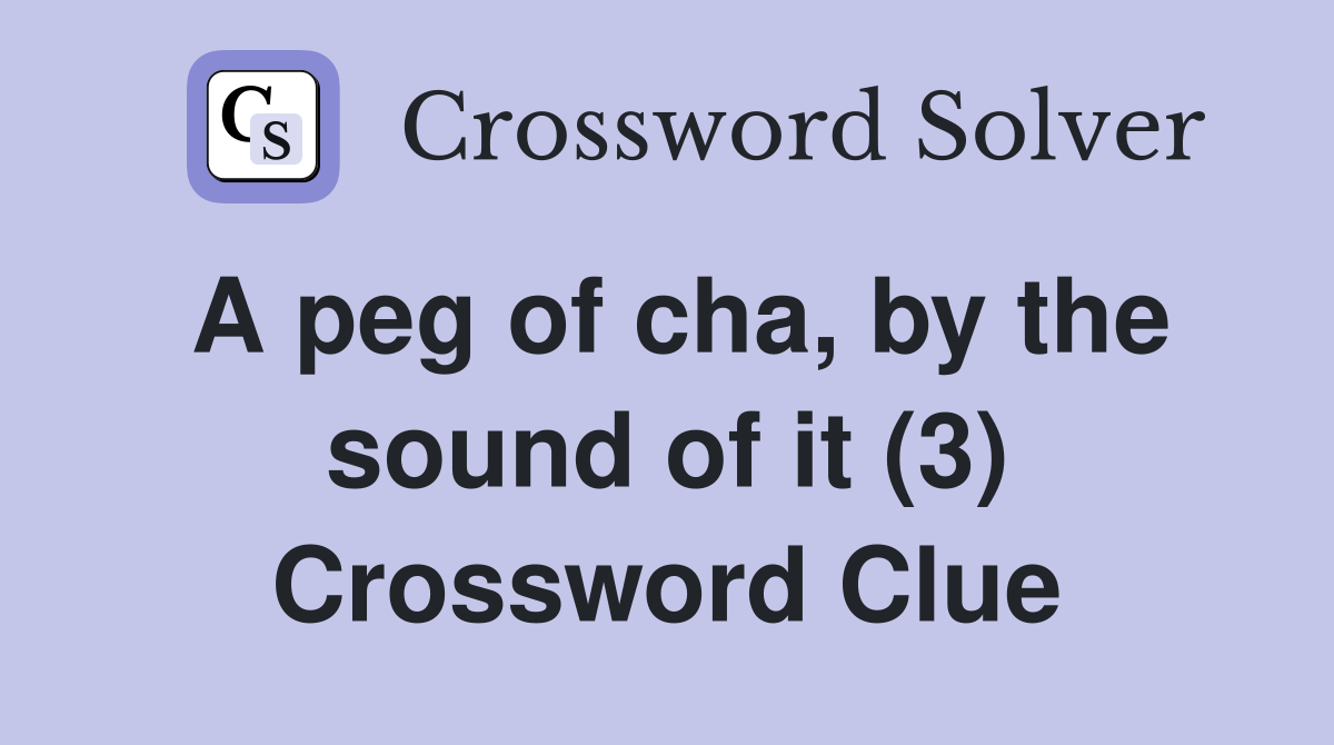 A peg of cha by the sound of it (3) Crossword Clue Answers