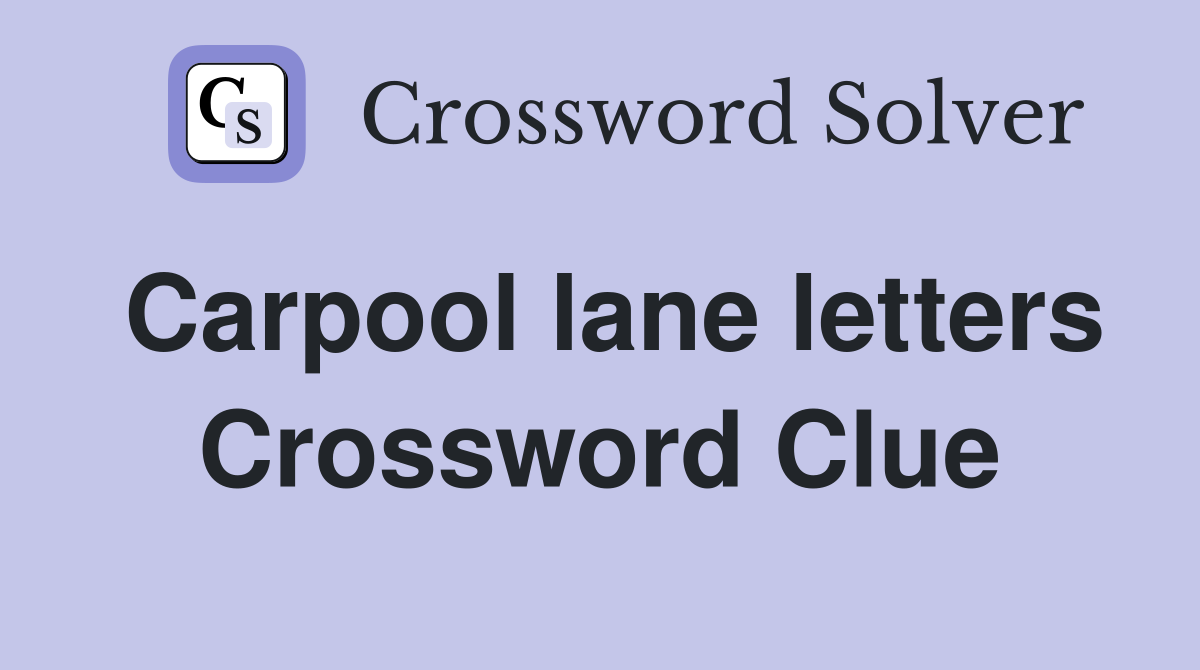 Carpool lane letters Crossword Clue Answers Crossword Solver