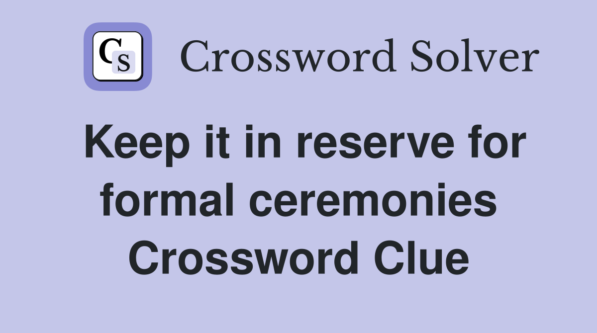 Keep it in reserve for formal ceremonies Crossword Clue Answers