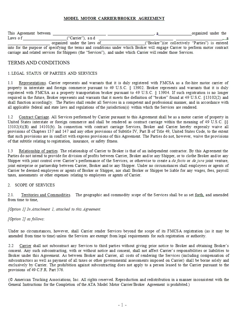 Blank Broker Carrier Agreement Template Free Word Excel Templates