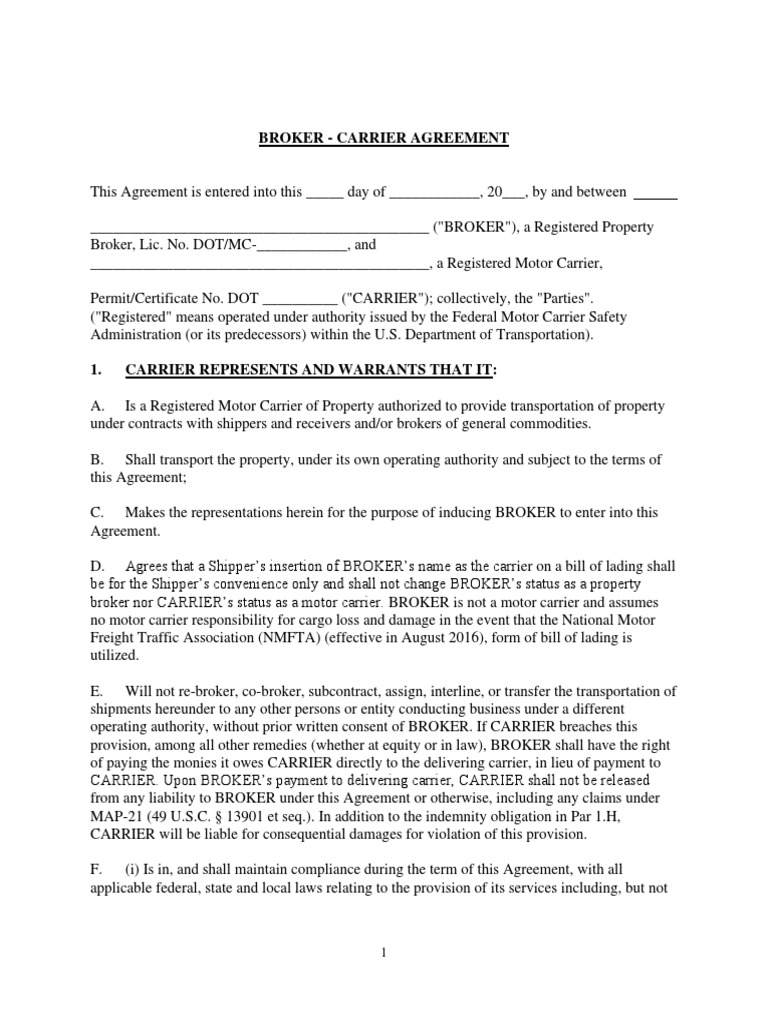 Blank Broker Carrier Agreement Template Free Word Excel Templates