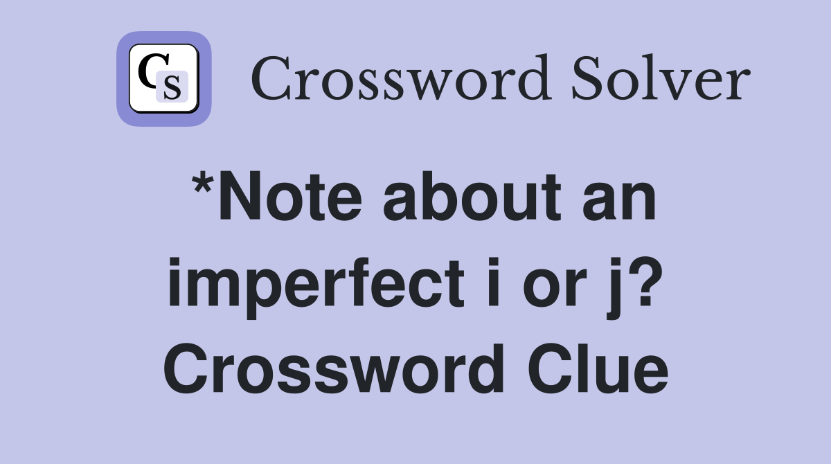 *Note about an imperfect i or j? Crossword Clue Answers Crossword