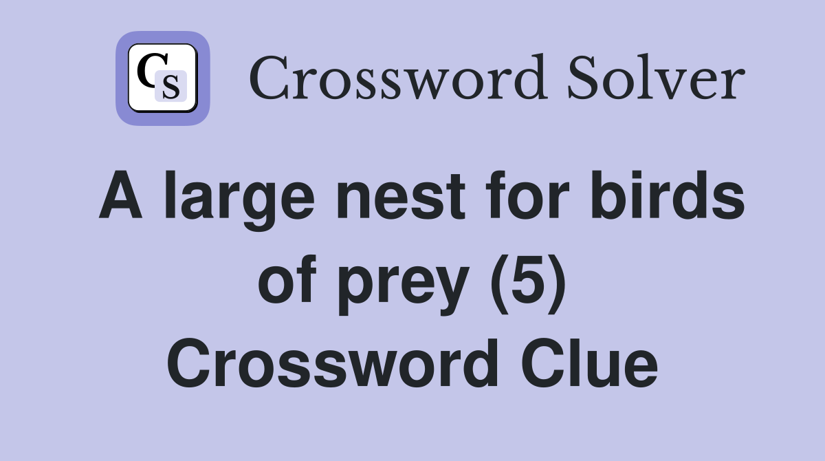 A large nest for birds of prey (5) Crossword Clue Answers Crossword