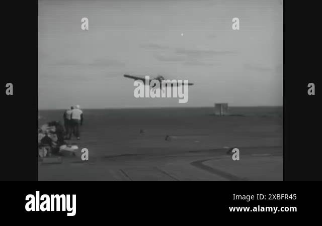 1942 B 25s land on an aircraft carrier runway some of them crashingo