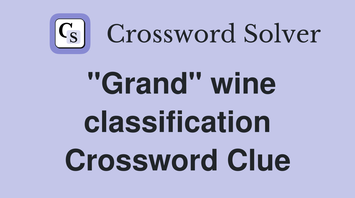 quot Grand quot wine classification Crossword Clue Answers Crossword Solver
