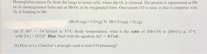 Solved Hemoglobin carries O2 from the lungs to tissue cells Chegg com