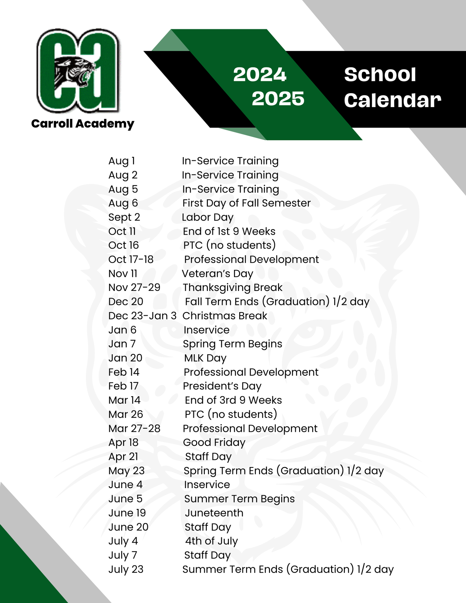 School Calendar Carroll Academy