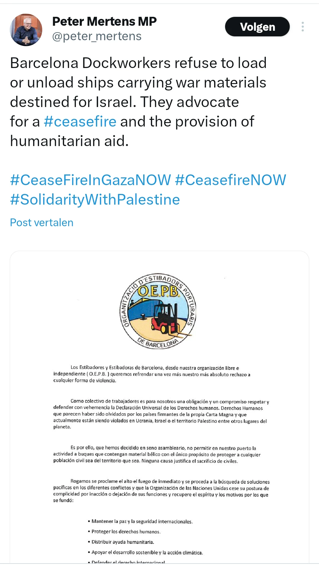 Barcelona unions refuse to carry war materials destined for the Zionist