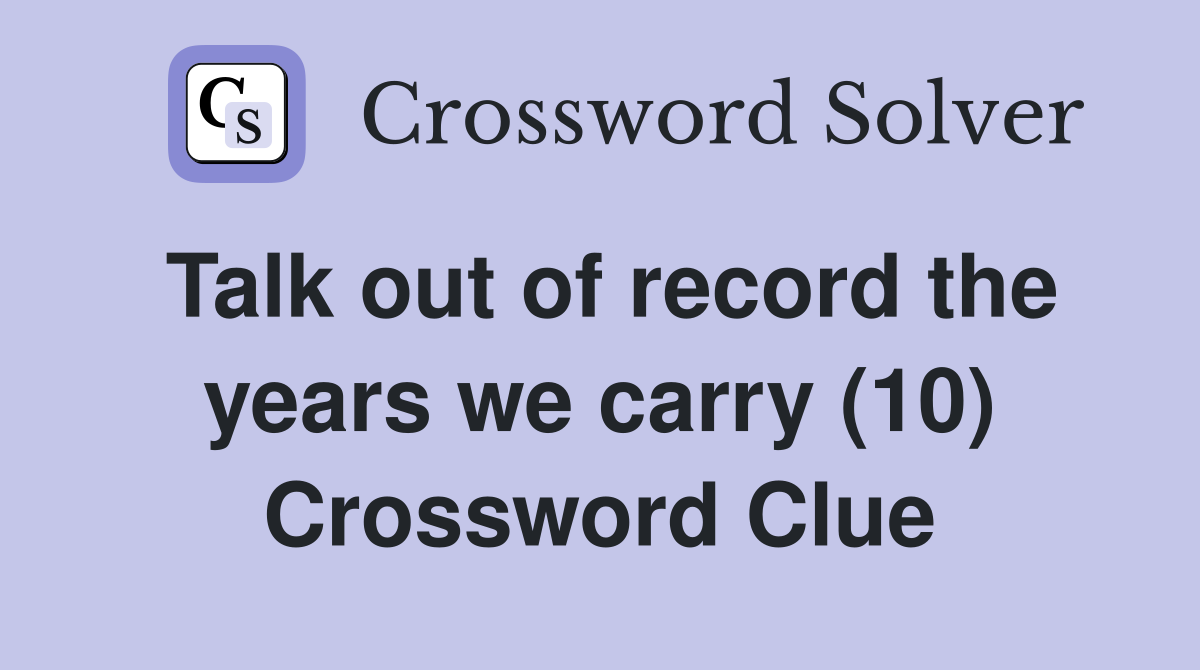 Talk out of record the years we carry (10) Crossword Clue Answers