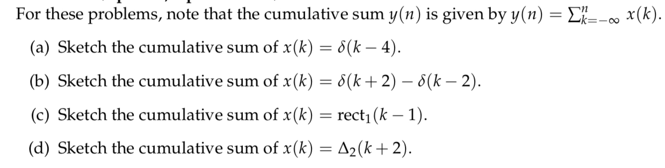 Solved For these problems note that the cumulative sum y(n) Chegg com