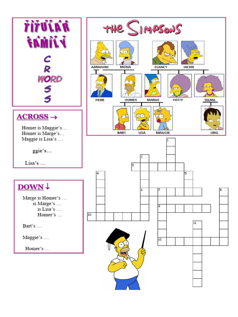 Free The Simpsons Kriss Kross Puzzle Free Printable PDF
