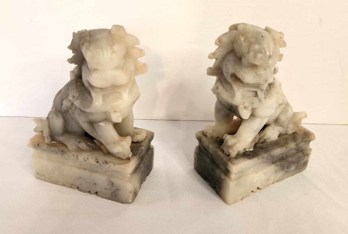 Lot #1 Pair Carve Stone Foo Lions EstateSales org