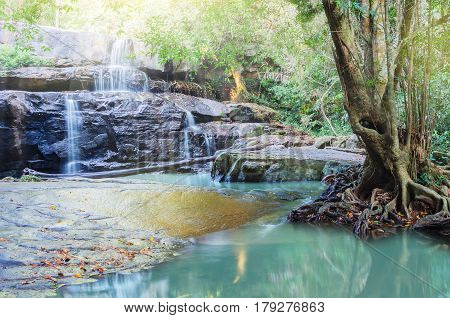 Paradise waterfall in Tropical rain forest of Thailand water fall in