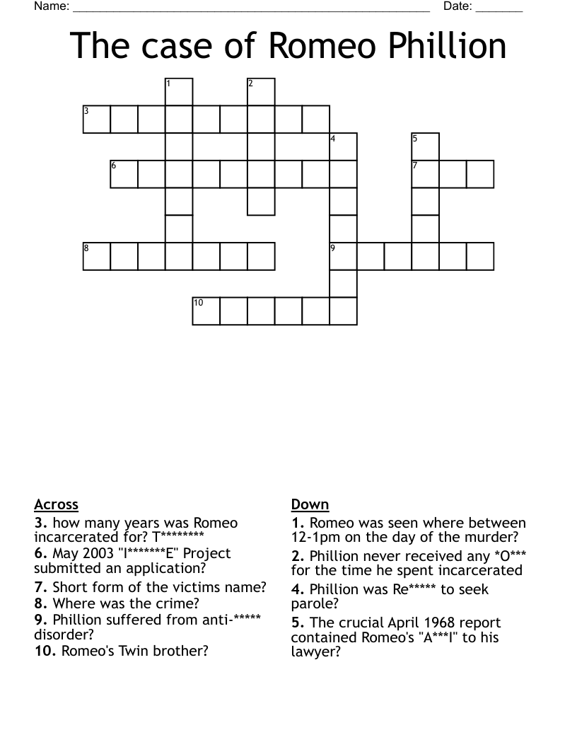 The case of Romeo Phillion Crossword WordMint