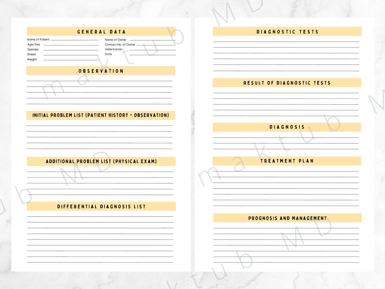 Veterinary Case Work up Form for Vet Students Vet Nurses Vet Etsy