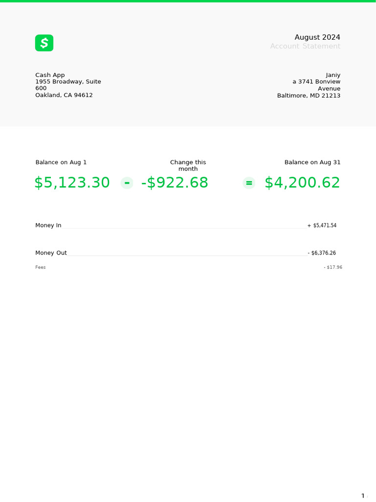 Cash App Bank Statement Template Editable and Customizable Inspire Uplift