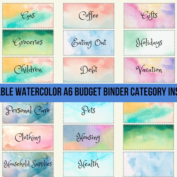 Budget Binder Category Insert Label Dashboard Cash Envelope Stuffing