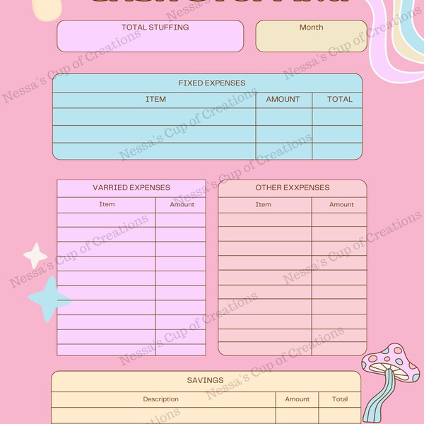 Cash stuffing template Etsy France