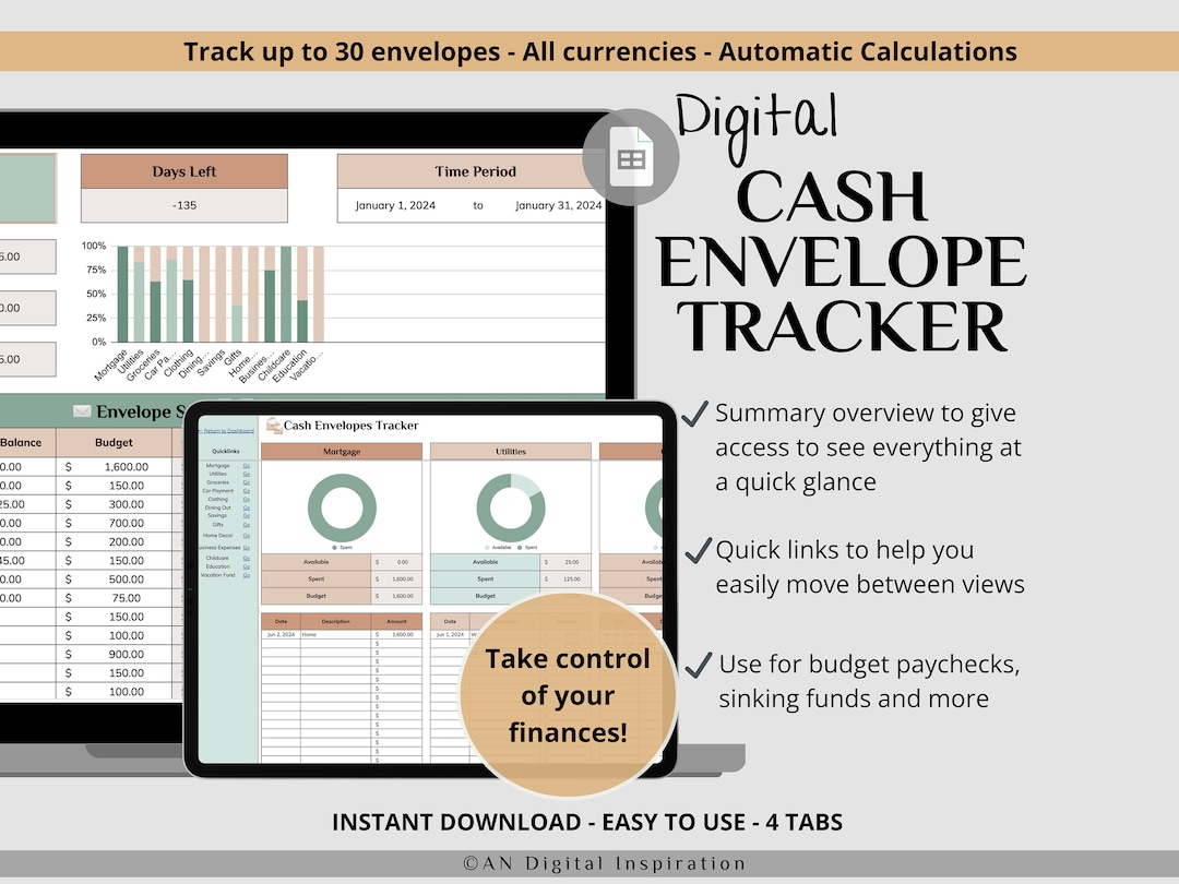 Digital Cash Stuffing Template Google Sheets Budget Tracker (PDF) Etsy