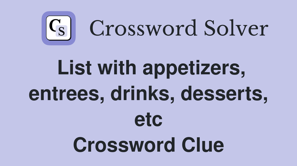 List with appetizers entrees drinks desserts etc Crossword Clue