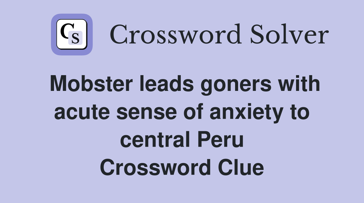 Mobster leads goners with acute sense of anxiety to central Peru