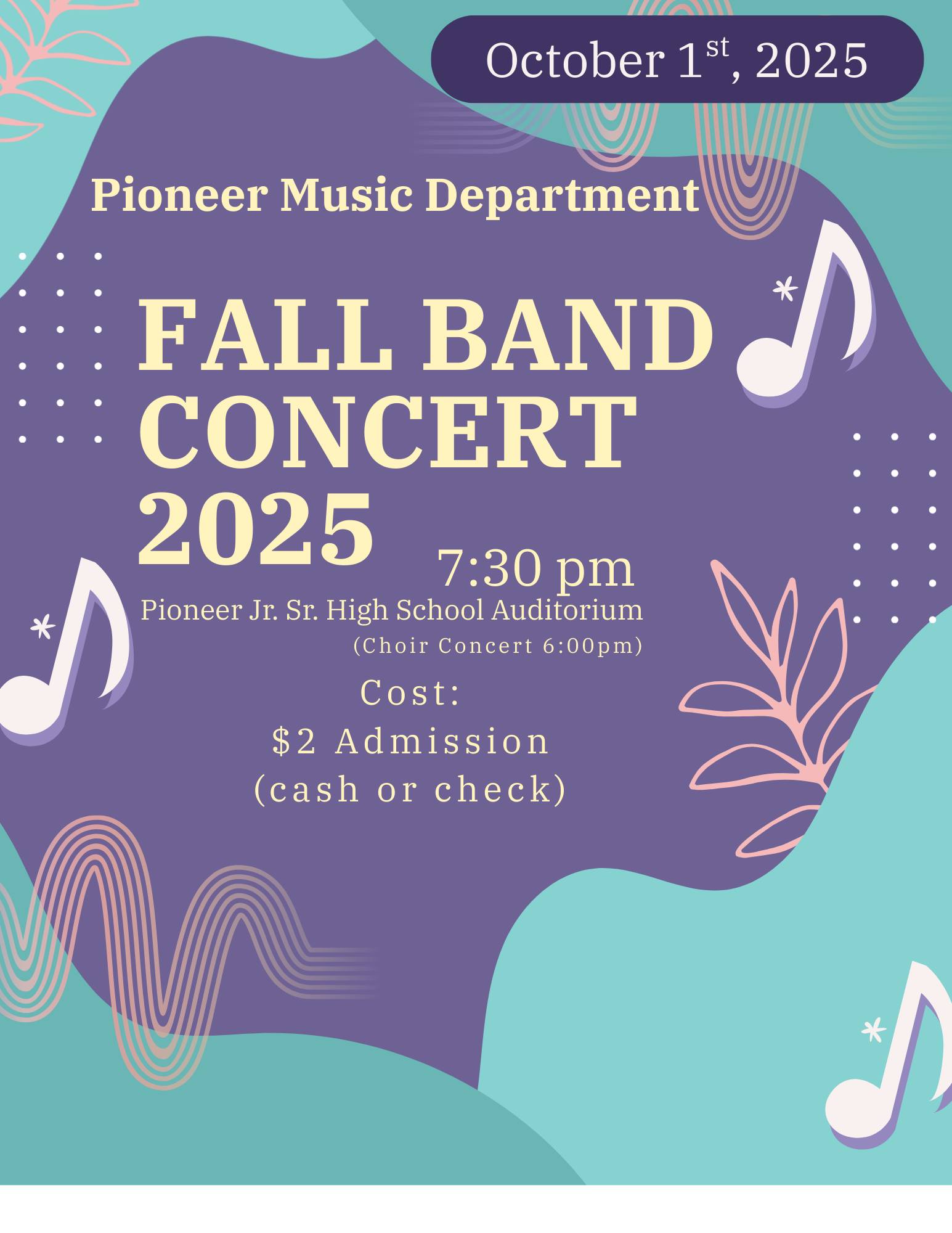 Pioneer Band Fall Concert Cass County Calendar