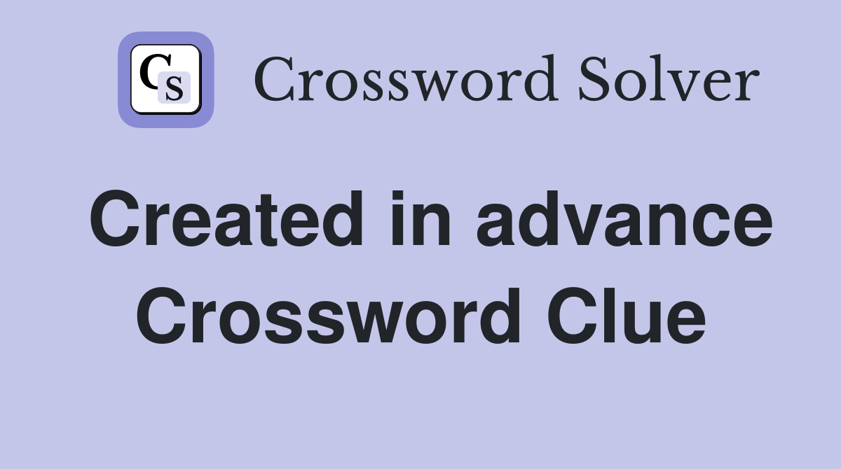 Created in advance Crossword Clue Answers Crossword Solver
