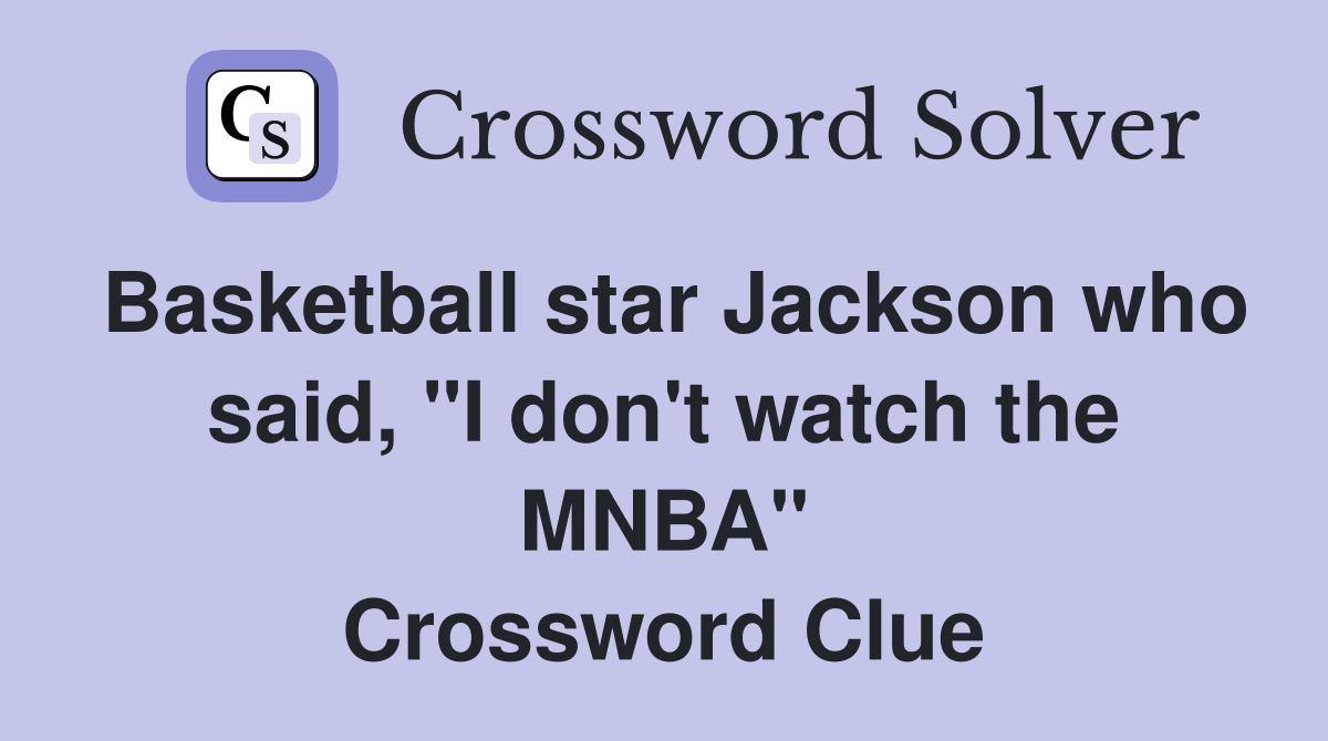 Basketball star Jackson who said quot I don #39 t watch the MNBA quot Crossword