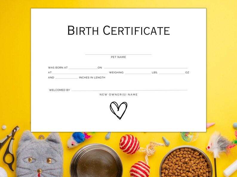Kitten Birth Certificate Printable Cat Birth Pet Certificate dog Owner