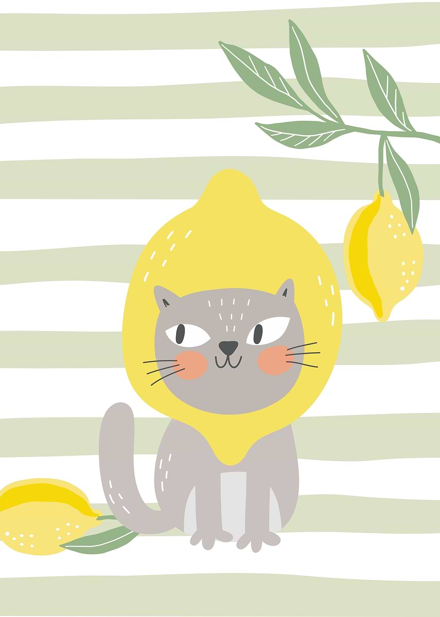#39 Cute Cat with Lemon Hat #39 Poster picture metal print paint by JuliaB