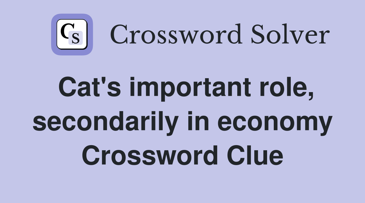 Cat #39 s important role secondarily in economy Crossword Clue Answers