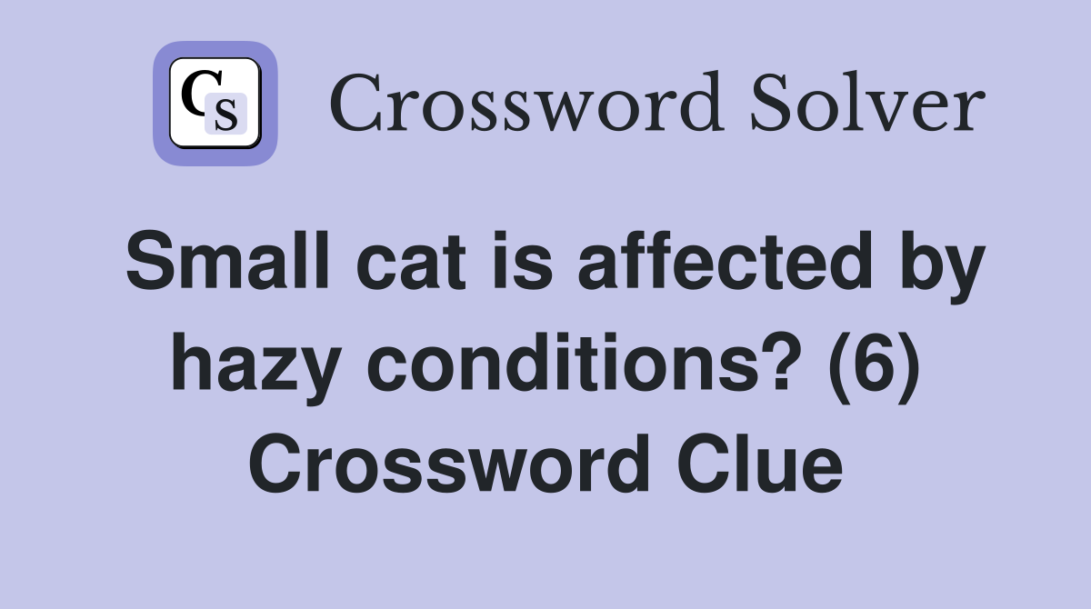 Small cat is affected by hazy conditions? (6) Crossword Clue Answers