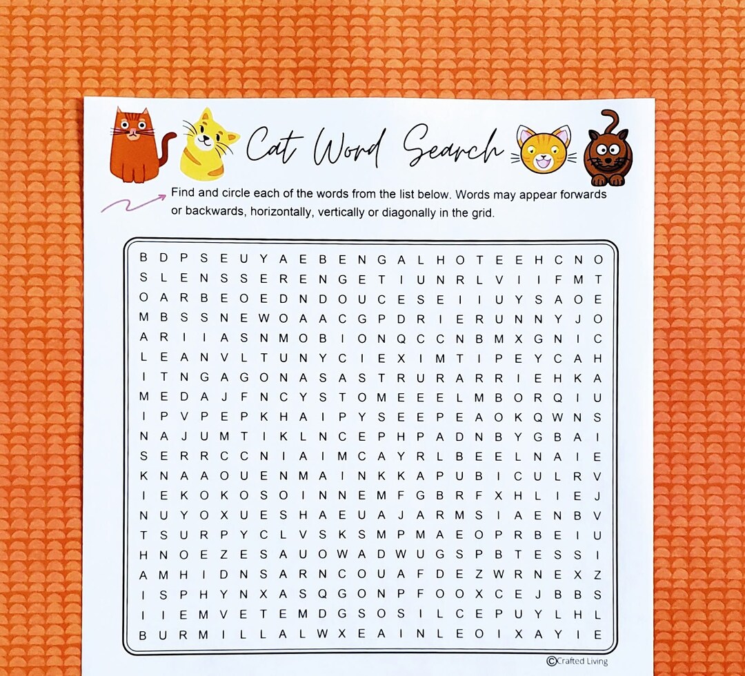Cat Word Search Printable PDF Large Word Search Puzzle Etsy