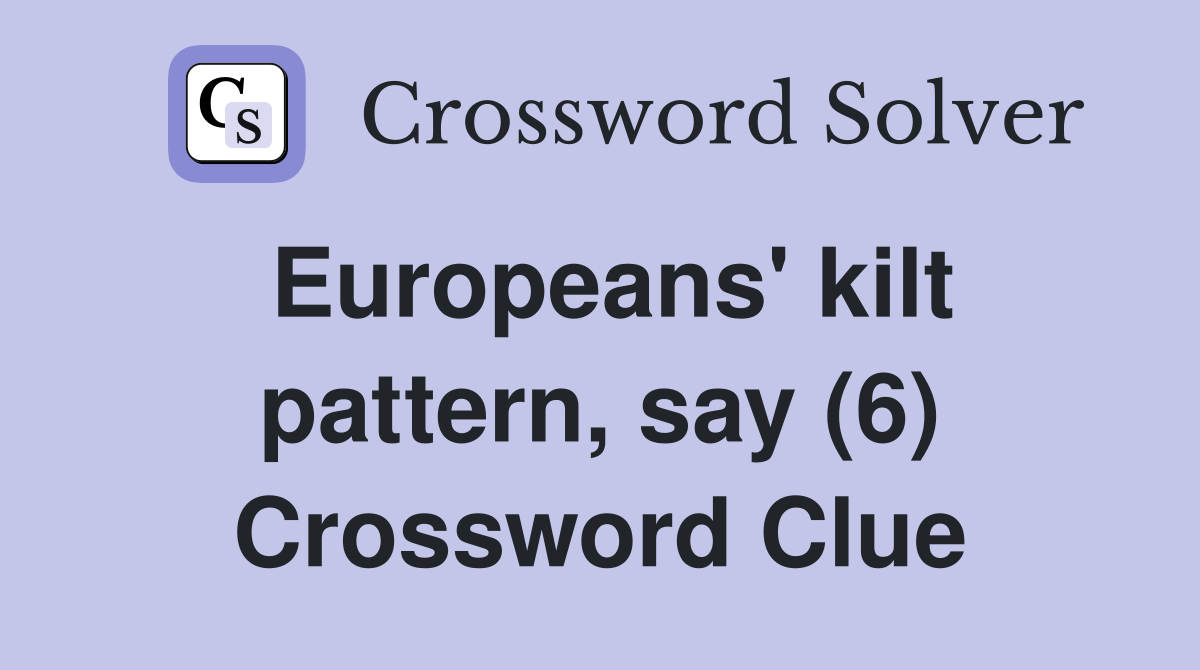 Europeans #39 kilt pattern say (6) Crossword Clue Answers Crossword