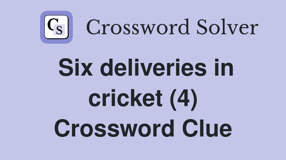Six deliveries in cricket (4) Crossword Clue Answers Crossword Solver