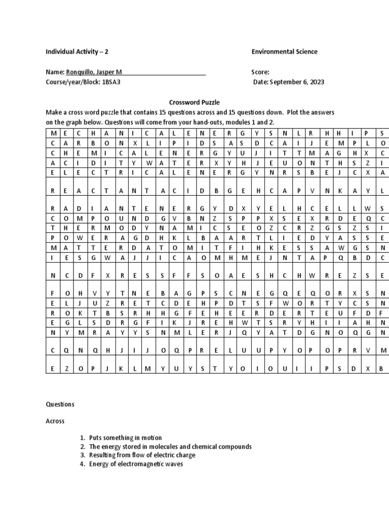 Act Crossword Puzzle RONQUILLO JASPER PDF Chemistry Atoms