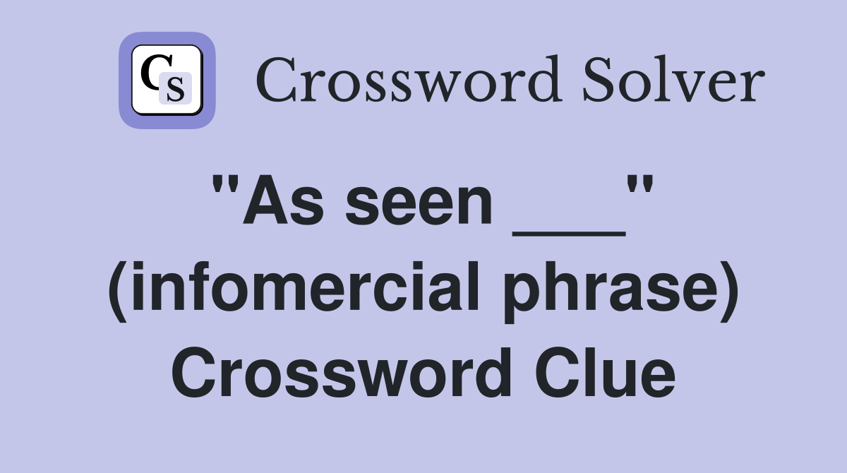quot As seen quot (infomercial phrase) Crossword Clue Answers Crossword