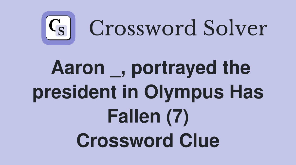 Aaron portrayed the president in Olympus Has Fallen (7) Crossword