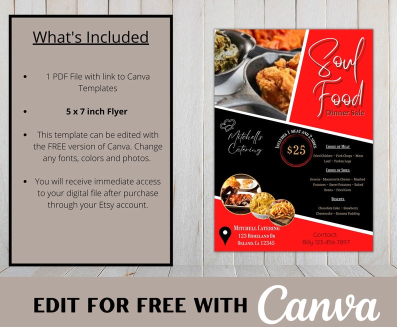 Soul Food Flyer Dinner Sale Catering Advertisement 5x7 Etsy