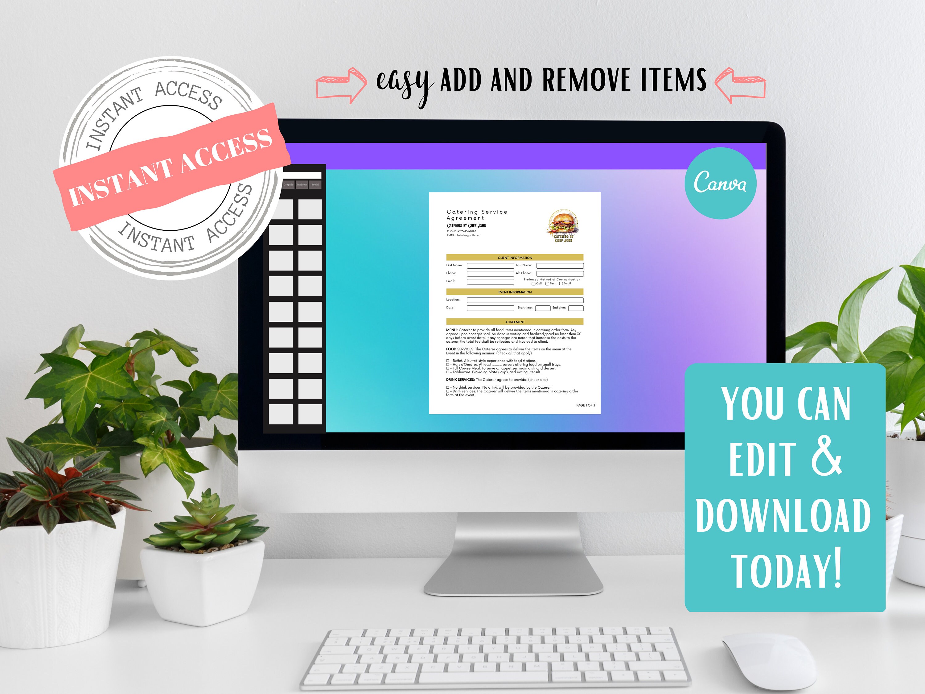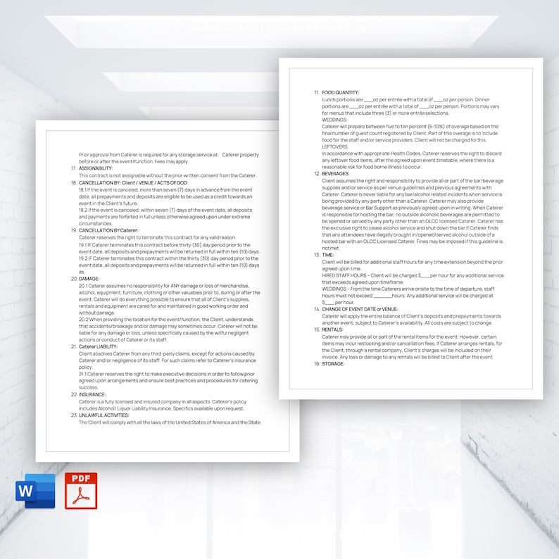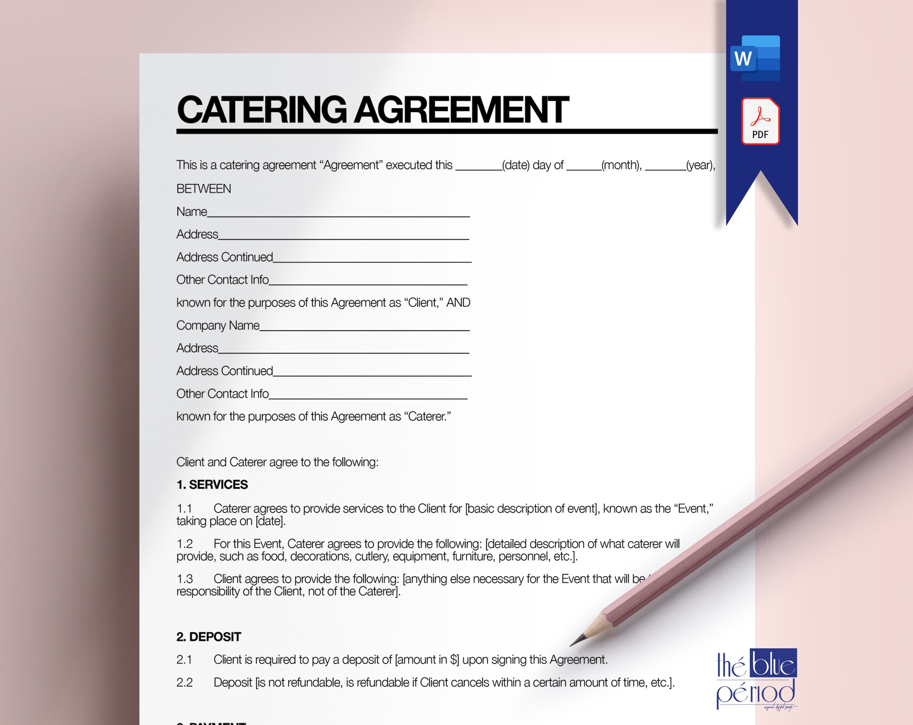 Editable Catering Agreement Etsy