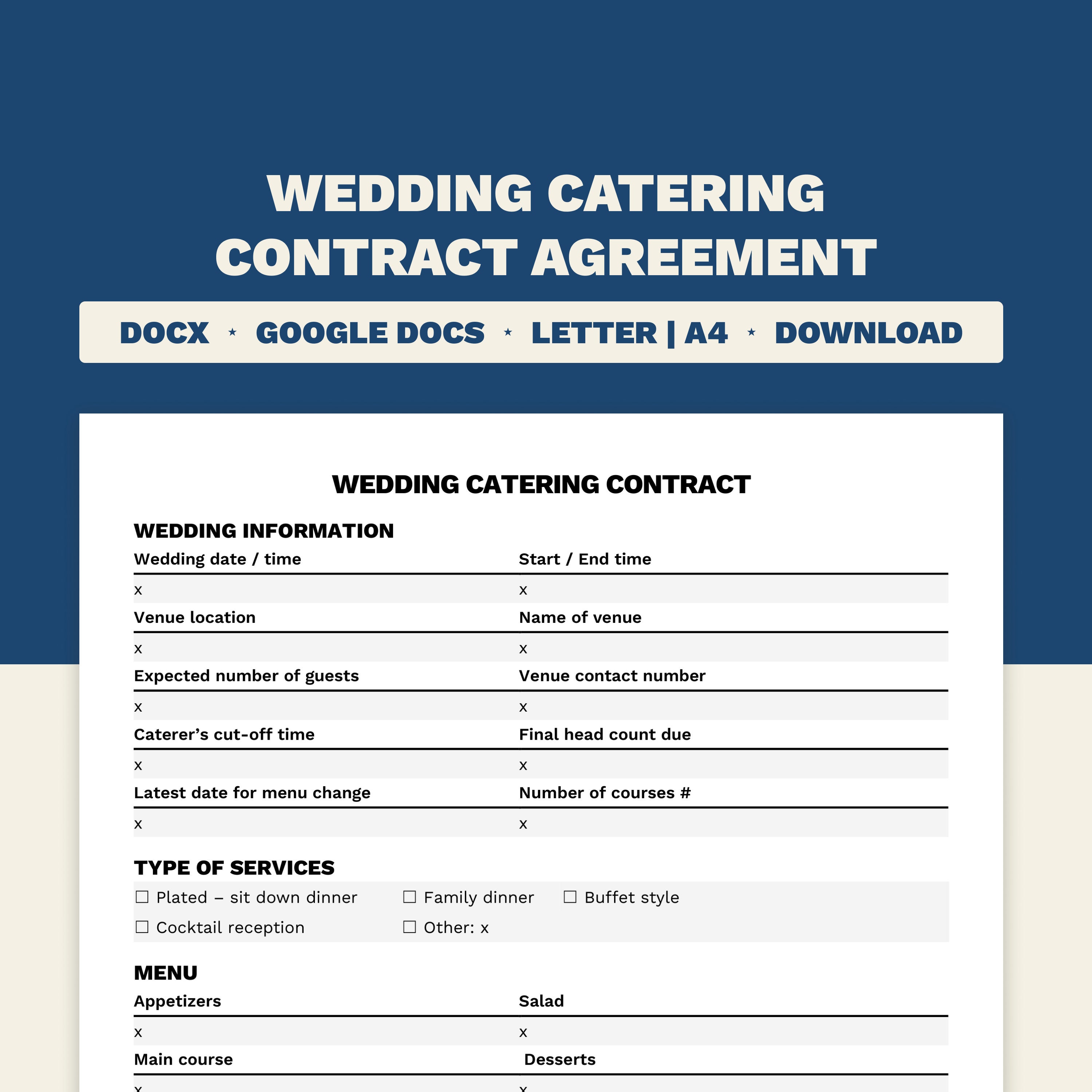 Catering Contract 7 Free PDF Download Wedding catering Catering