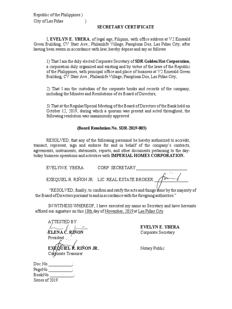 Secretary #39 s Certificate Board Resolution Sample PDF