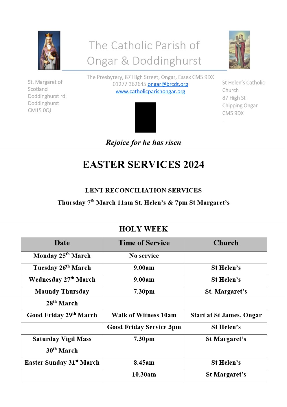 Easter Services during Holy Week Catholic Parish Ongar