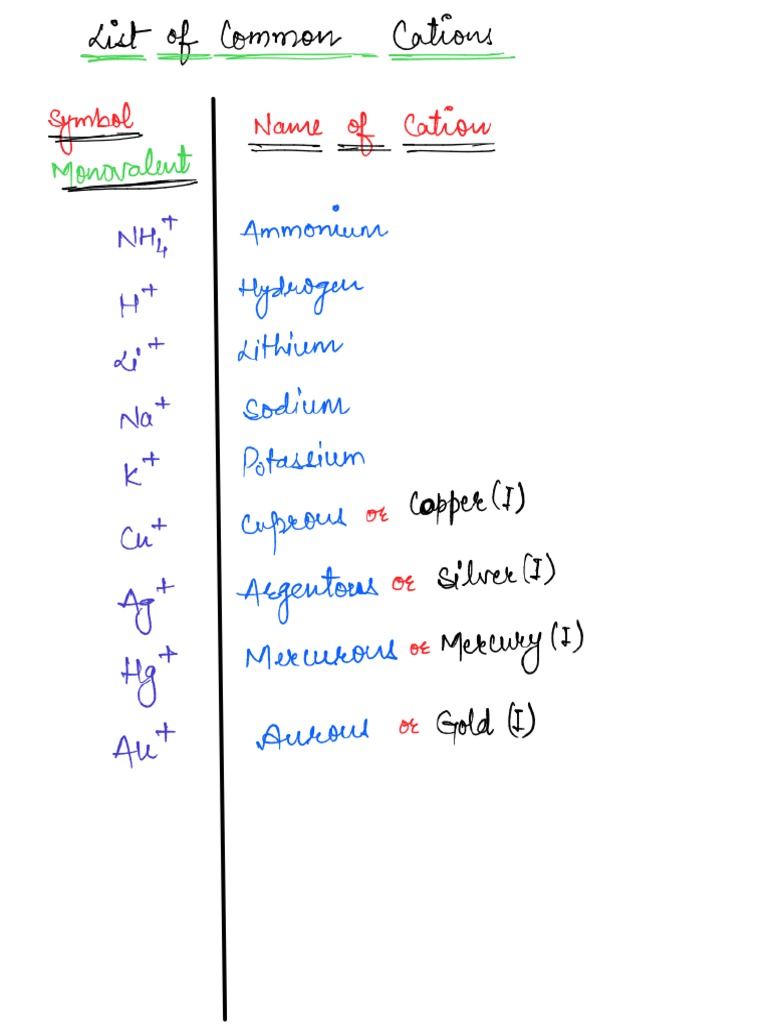 List Of Cations