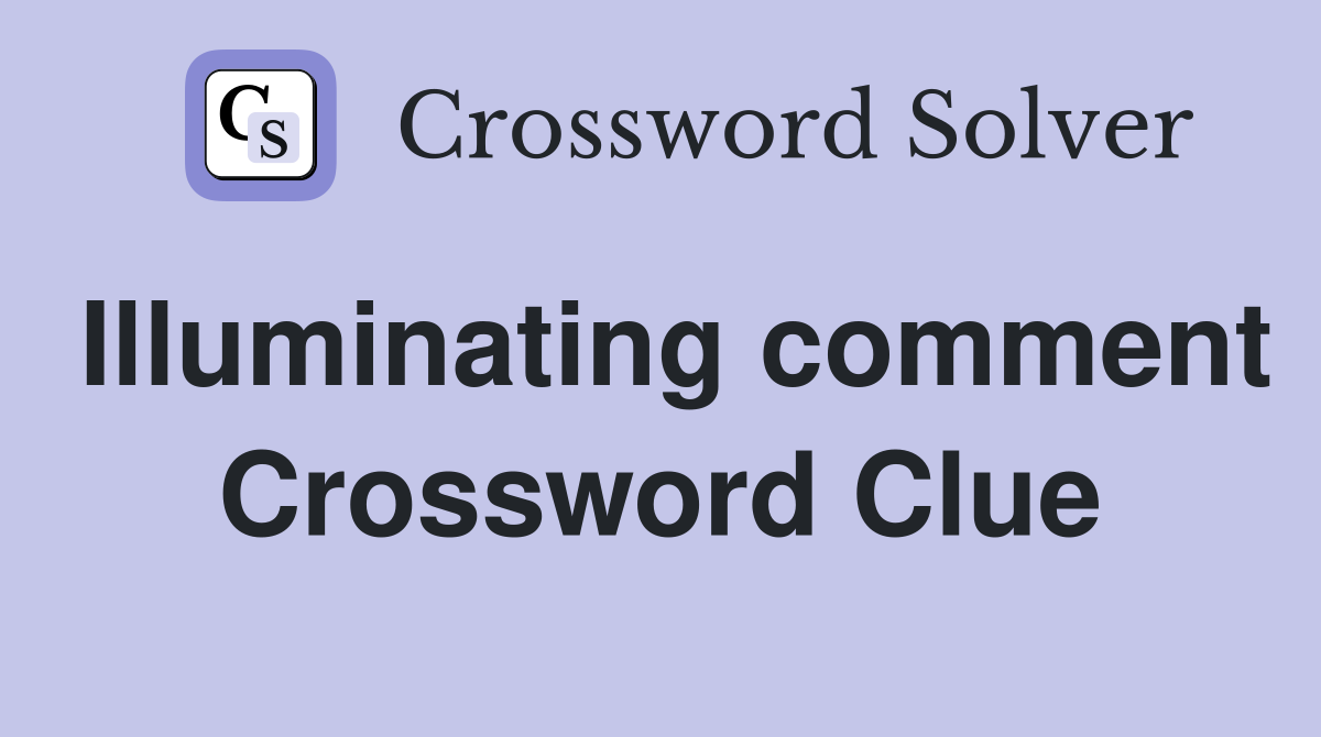 Illuminating comment Crossword Clue Answers Crossword Solver