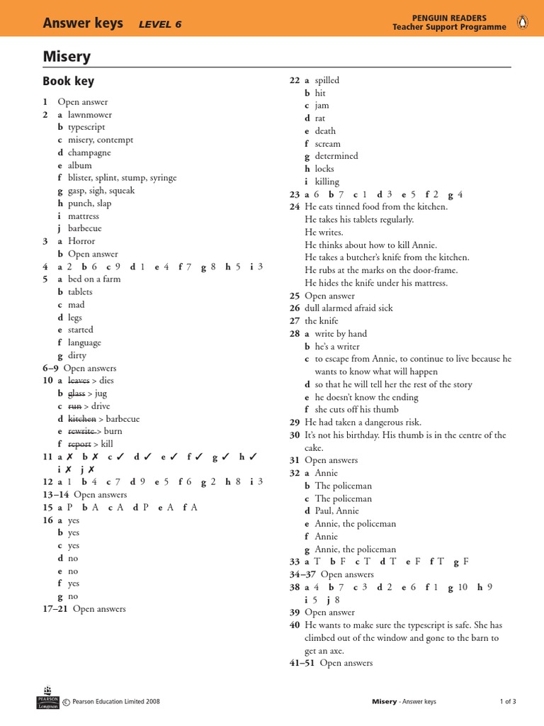 Misery: Answer Keys PDF